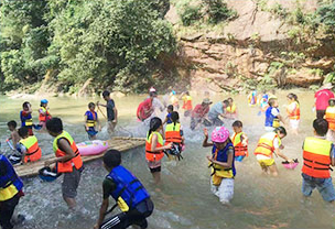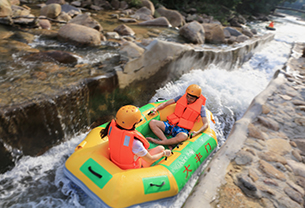 大豐門(mén)漂流河道經(jīng)過(guò)業(yè)界資深人士以及國(guó)際漂流工程專(zhuān)家精心設(shè)計(jì),自然和諧,渾然天成,水繞山轉(zhuǎn),石木相間,可觀(guān)山景,賞水色,溪流驚而不險(xiǎn),卻又刺激無(wú)比。在一葉扁舟的上下起伏中,去體驗(yàn)生命的動(dòng)感,在一瀉百里的河溪中,來(lái)享受速度的樂(lè)趣,美景隨波移動(dòng),刺激過(guò)后,換來(lái)一身的清爽和快感……
