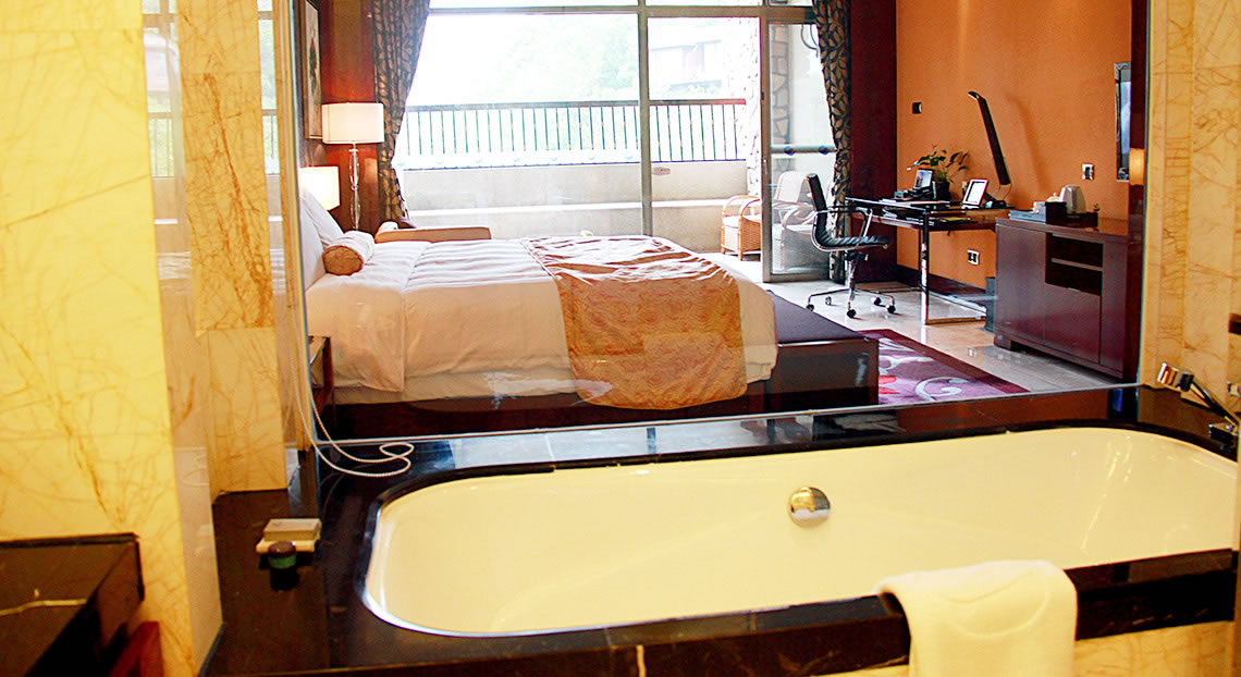★ 房間集中在主樓第3層。房間帶陽臺、陽臺上有獨立溫泉池、私密性強、面向溫泉池,部分房間可看到白水仙瀑布。共有14間房(全部為大床房)。