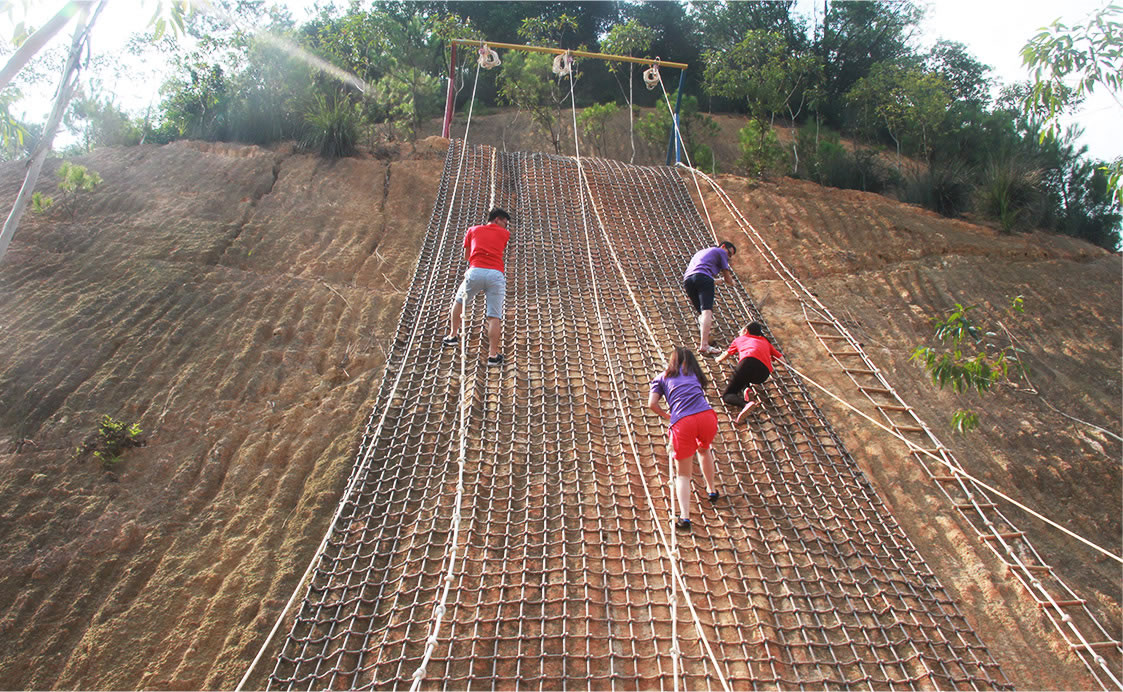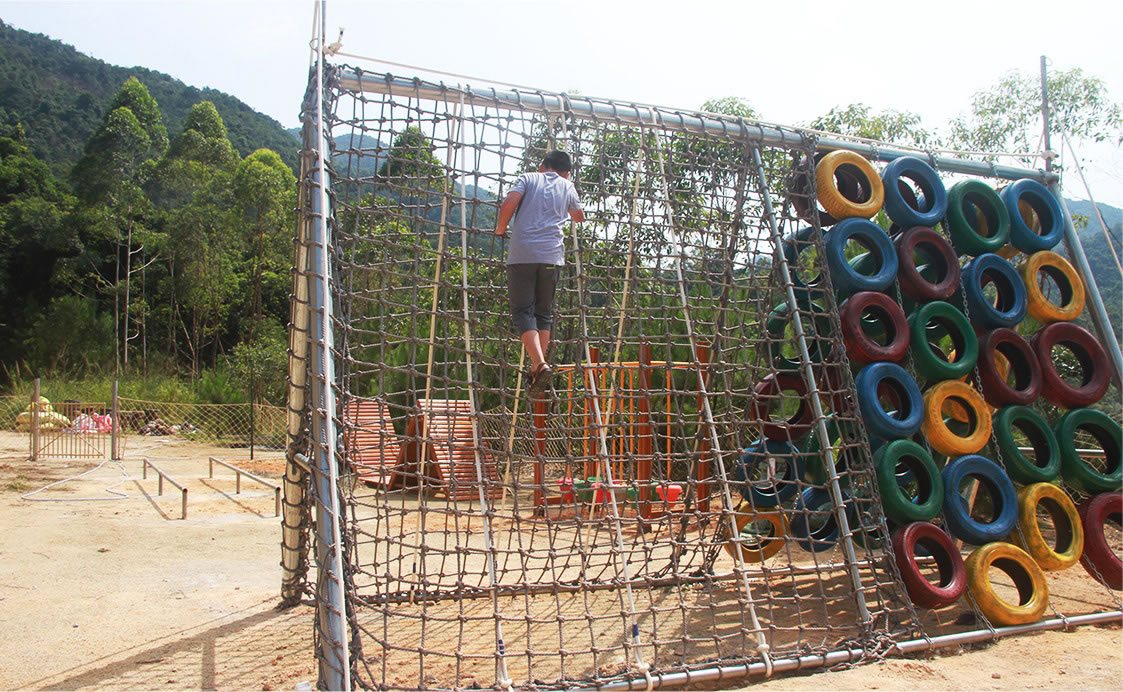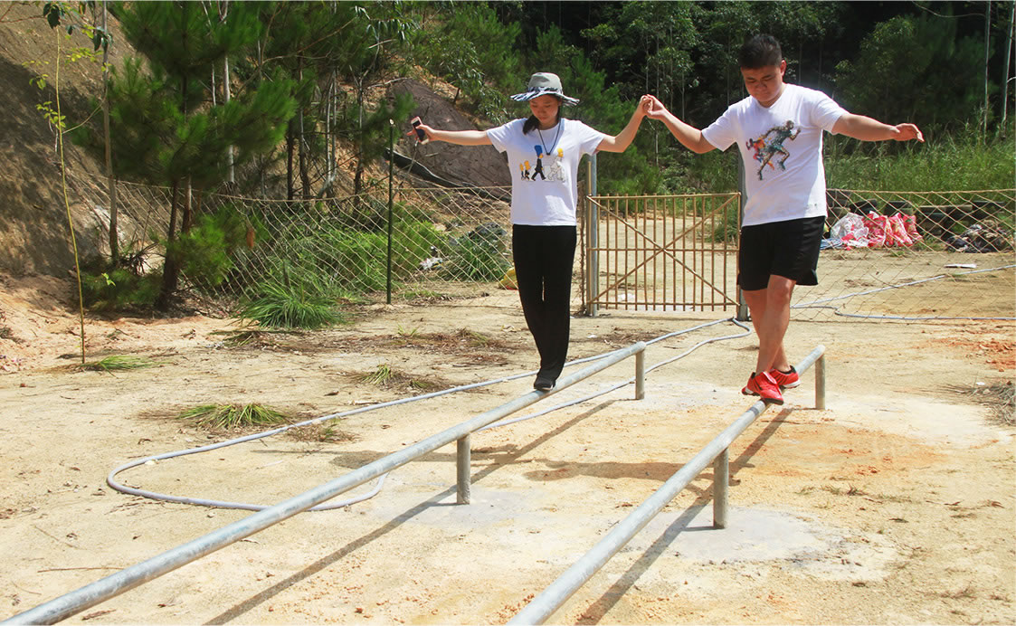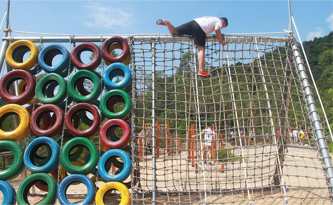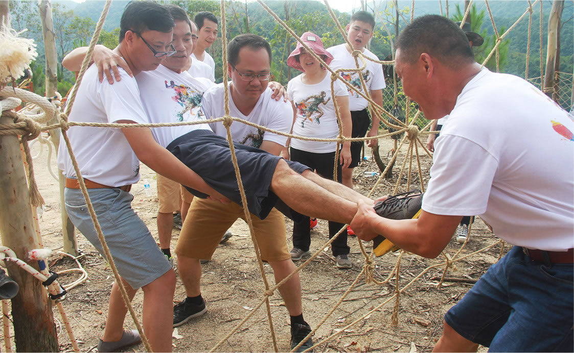 通過團(tuán)隊(duì)協(xié)作令所有人都從墻的正面翻到墻的背面,完成時(shí)間最快的組別勝出。