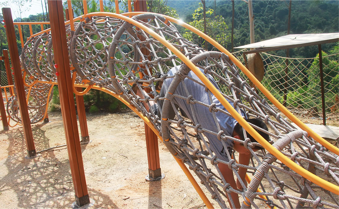 電網(wǎng)中間有一個(gè)大孔,所有隊(duì)員都必須從洞中穿過,身體不允許觸碰到電網(wǎng),