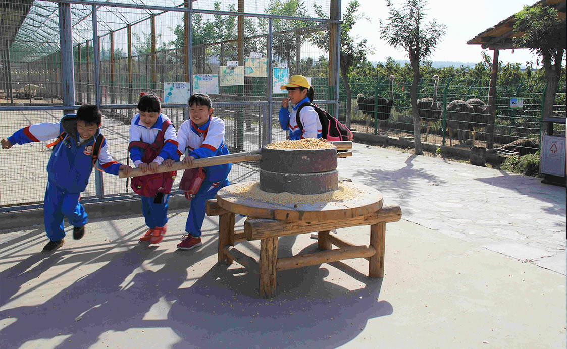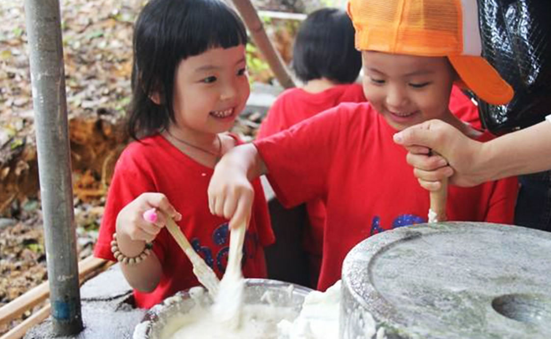 用小石磨親手磨豆子,出豆?jié){,點(diǎn)豆腐。體驗(yàn)過(guò)程中充分地給了孩子動(dòng)手互動(dòng)的機(jī)會(huì),體驗(yàn)勞動(dòng)的快樂(lè),達(dá)到寓教于樂(lè)的作用!